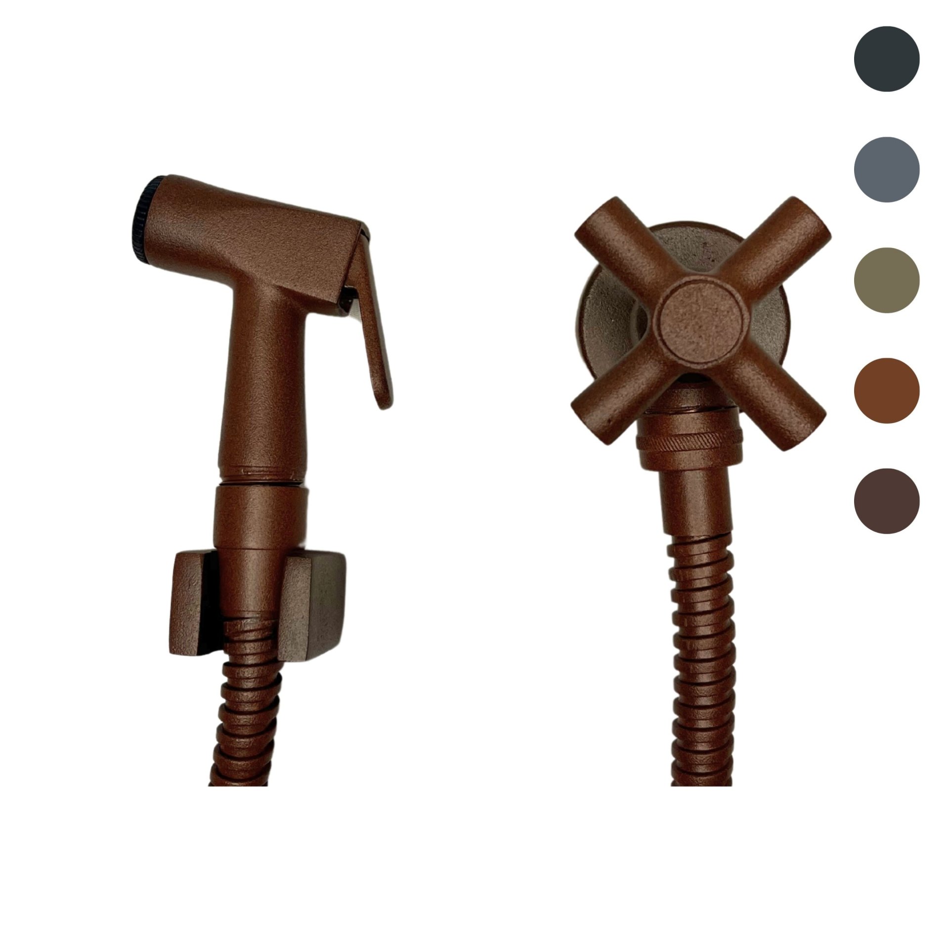 Ducha higiênica da linha Modena com acabamento Aço Cortem, ideal para lavabos e banheiros.
