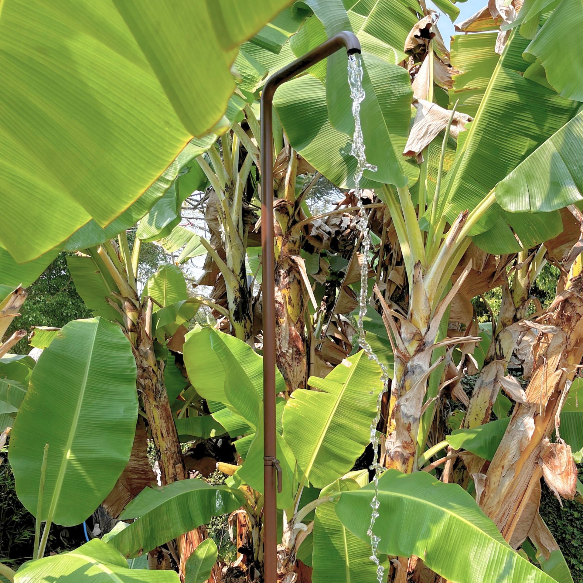Ducha para area externa de piso com agua fria, sem crivo e acionamento via alavanca no corpo da ducha no acabamento aço cortem.