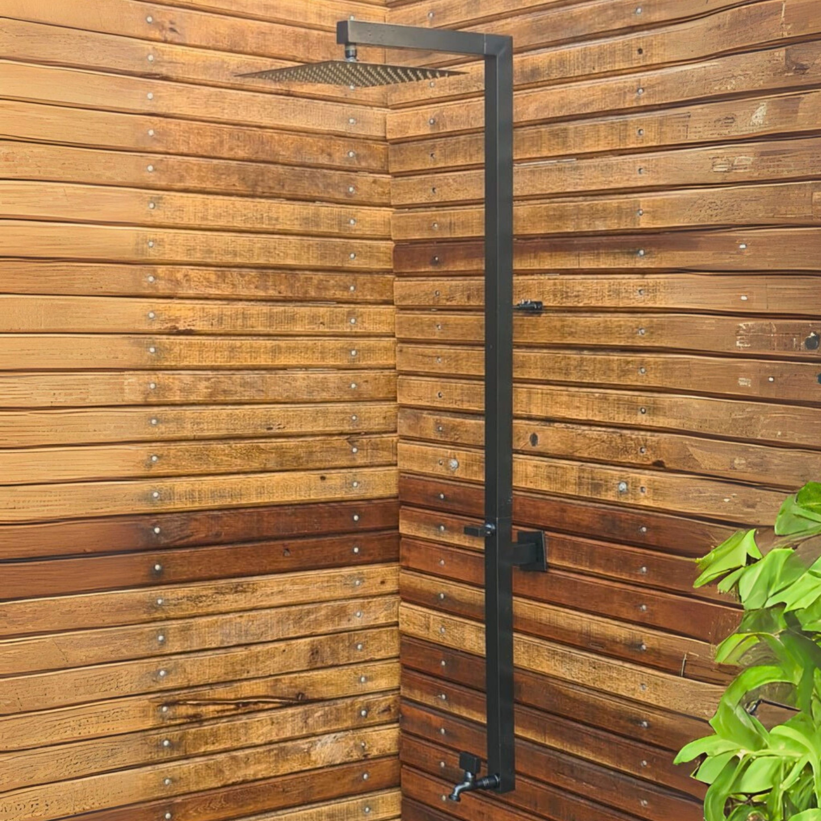 A Ducha/Chuveiro Taranto foi desenvolvida para instalação meia parede, unindo a moderninade do tubo quadrado com braço reto e crivo padrão de 20x20cm (com opção de 30x30cm),para um banho confortável em áreas externas. Com tubulação quadrada de 1 1/2” e registro tipo barra, entrega acionamento preciso e visual elegante para area externa, decks e áreas de piscina.