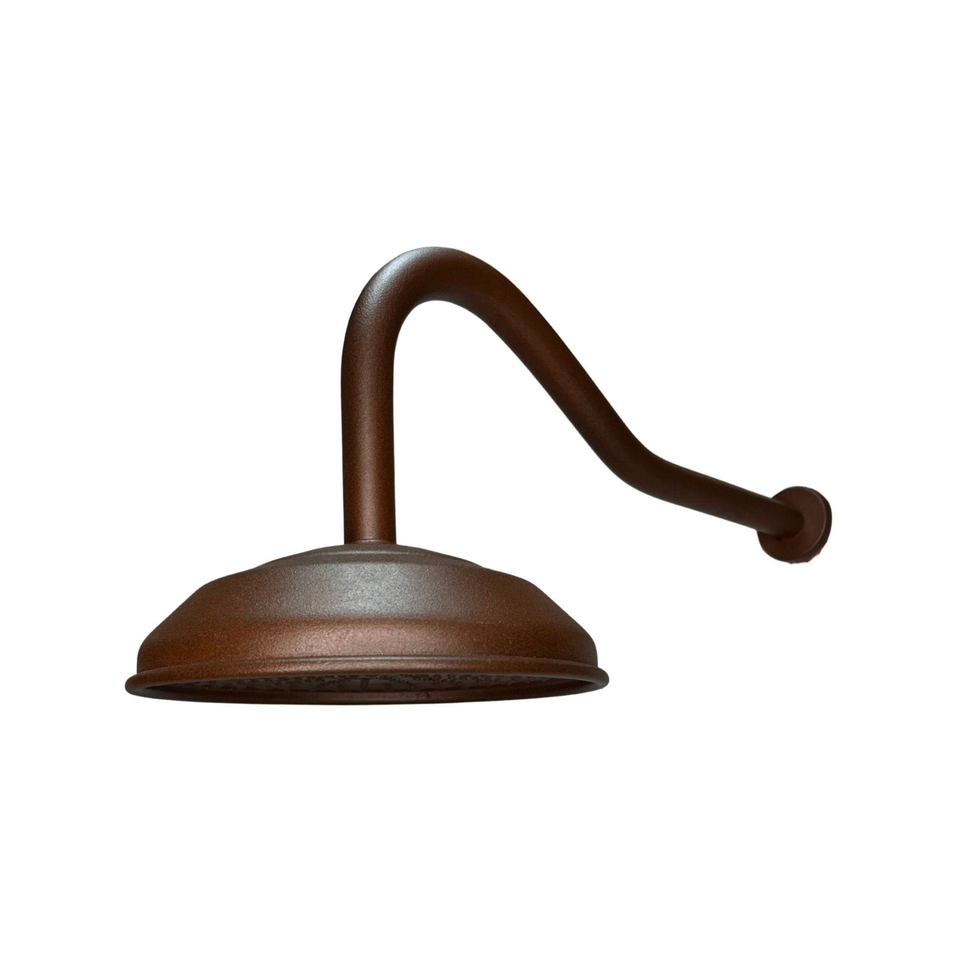 Ducha de parede com 18 cm de diâmetro com alto desempenho e durabilidade. Acabamento Aço Cortem.