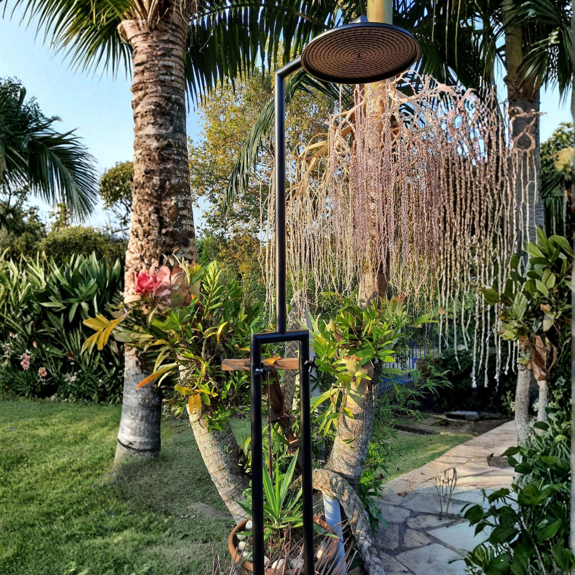 O chuveiro para area externa e interna modelo Palermo foi desenvolvida foco em alta vazão, unindo conforto de banho e praticidade. De piso, com tubulação de 1,5” e crivo padrão de 25 cm (opção de 35 cm), proporciona jato amplo e envolvente para jardins, decks e áreas de piscina. O registro tipo alavanca permite ajuste rápido e preciso de fluxo e temperatura, enquanto o opcional com torneira lava-pés (ou versão sem lava-pés) adequa a peça ao seu projeto. Produzida com materiais nobres e acabamento com camada adicional de proteção, resiste a sol, chuva e maresia.