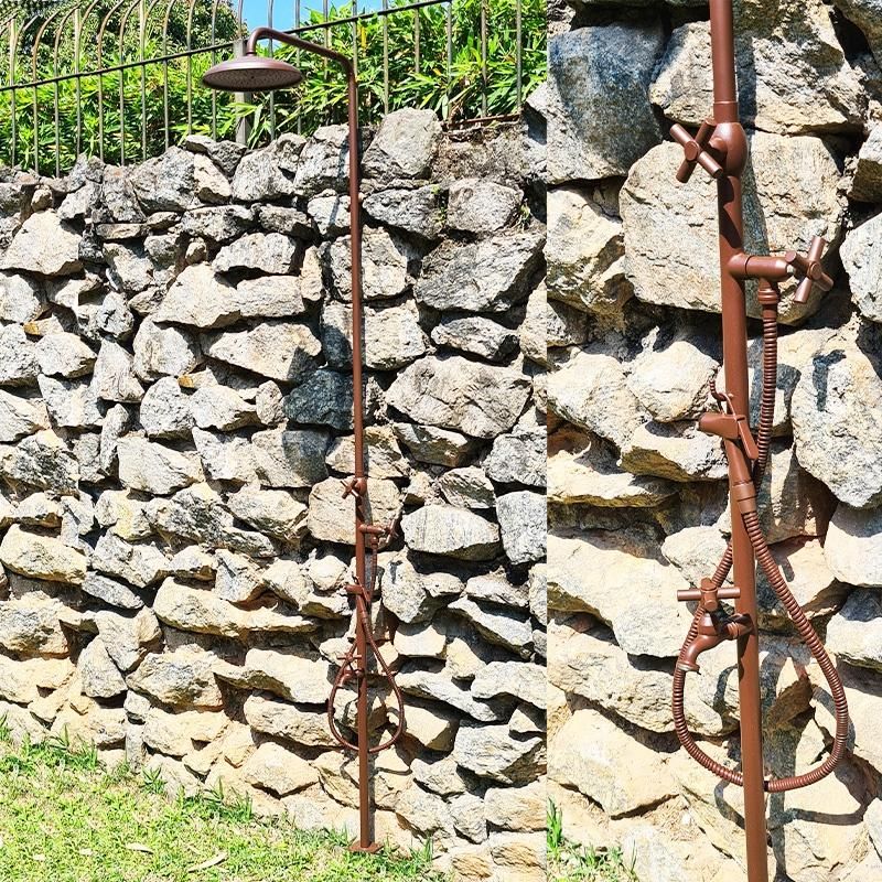 Esta ducha possui acabamento Marrom Cortem e é ideal para áreas externas como piscinas e spas. Altamente resistente a maresia e disponível em mais de 30 cores.