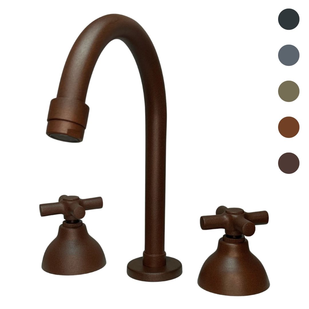 Misturador de bancada da linha Modena com acabamento Aço cortem, ideal para lavabos e banheiros.